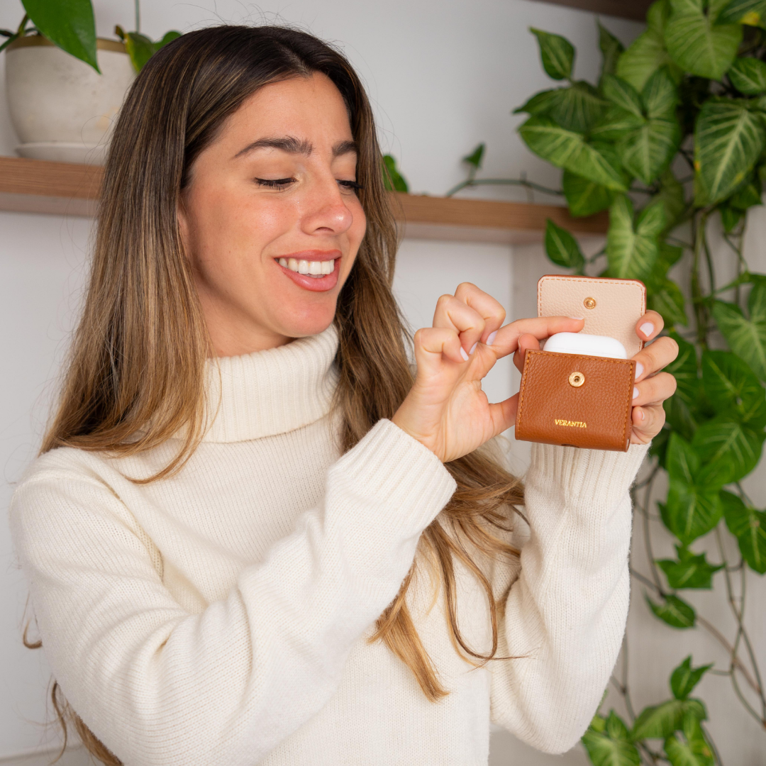 Estuche de audífonos de cuero. Compatible para audífonos inalámbricos.